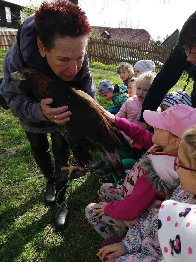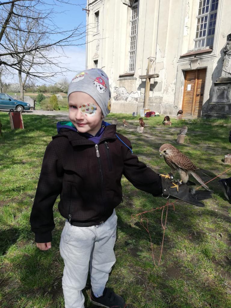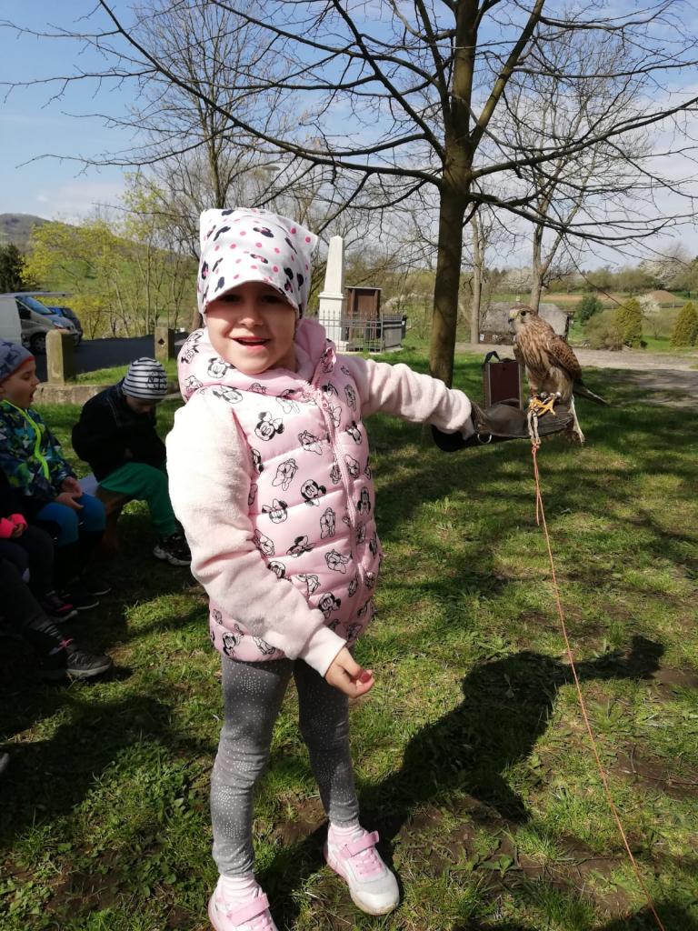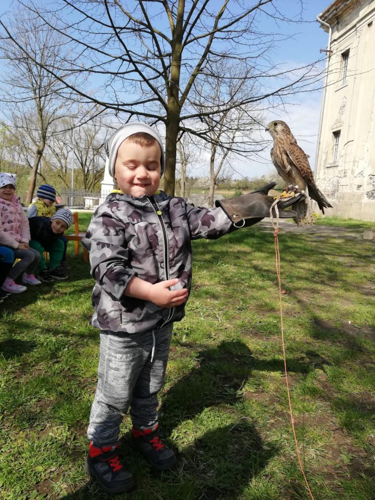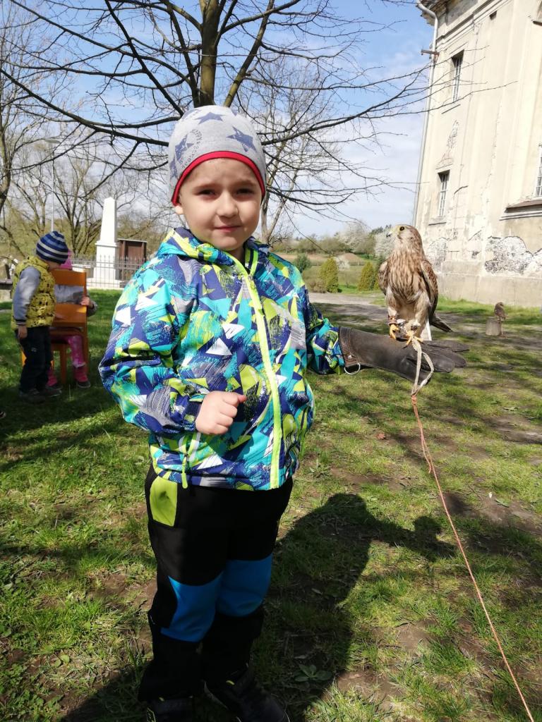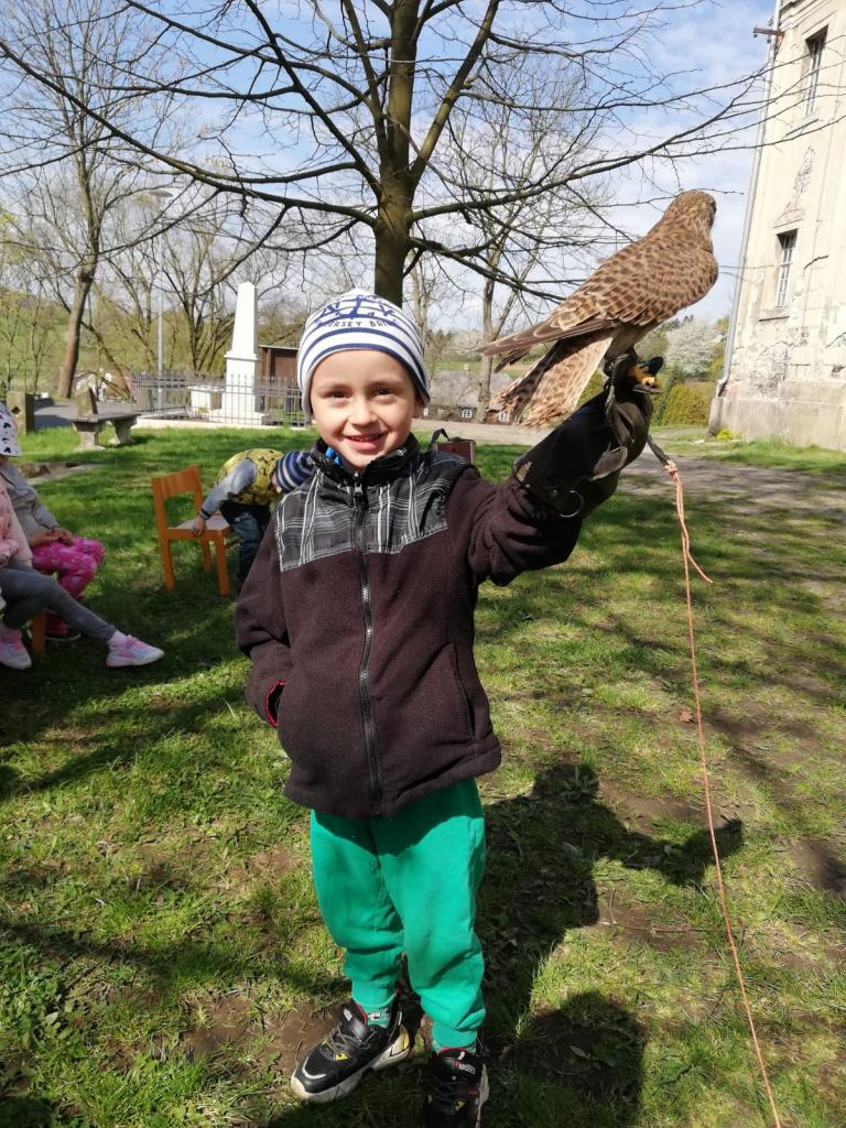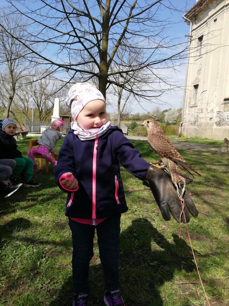 Povídání a o dravcích a sovách pro naše nejmenší...A na závěr si každý zahrál na sokolníka :)